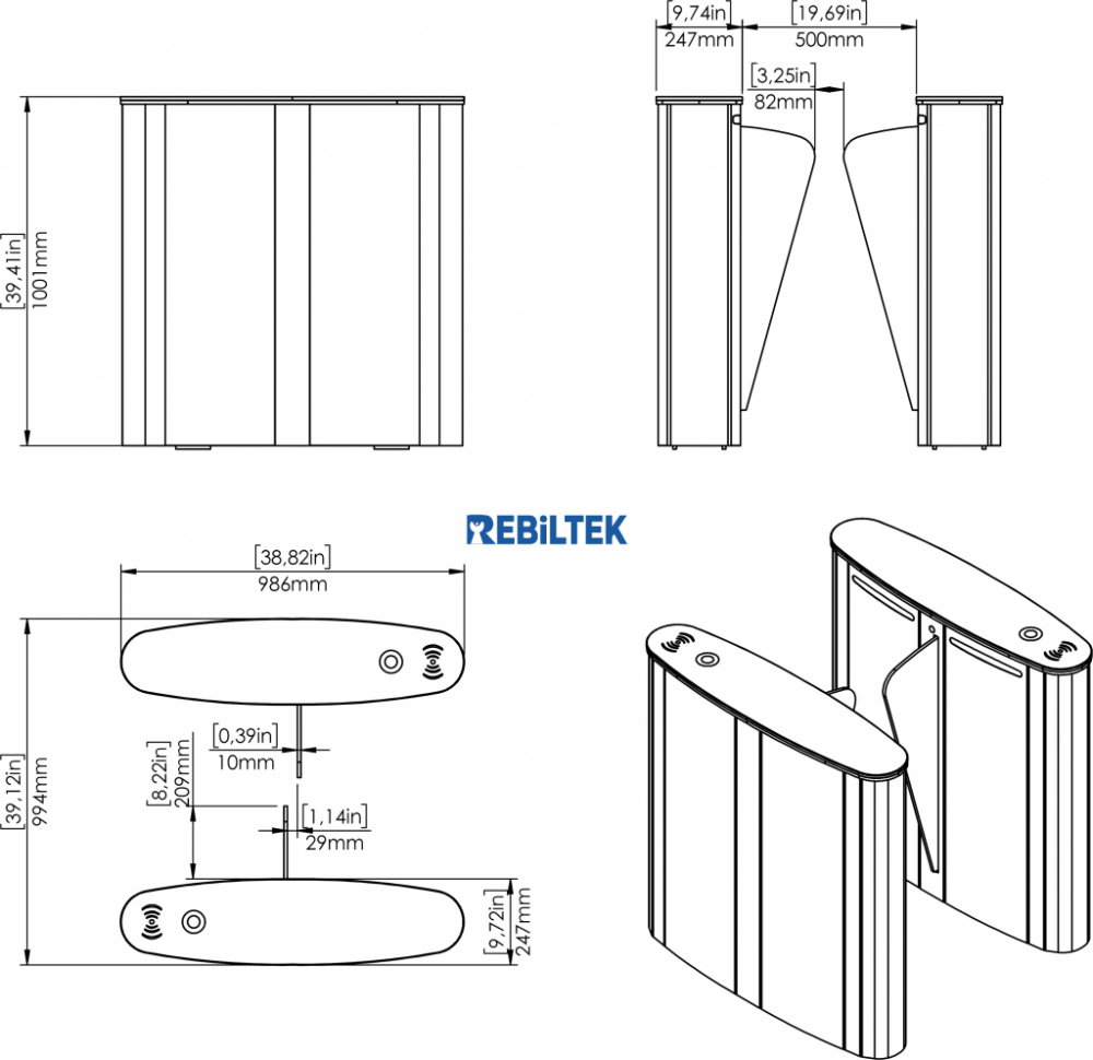 Cihaz, slim kasa yapısına ve zarif cam kanatlara sahiptir. Bu sayede bulunduğu ortama modern bir görünüm kazandırır. Kanatlar açılıp kapanırken sessiz çalışır ve geçişler son derece konforlu gerçekleşir. Standart tripod turnikelere göre çok daha hızlıdır ve birim zamanda daha fazla kişinin güvenli şekilde geçmesine olanak tanır.